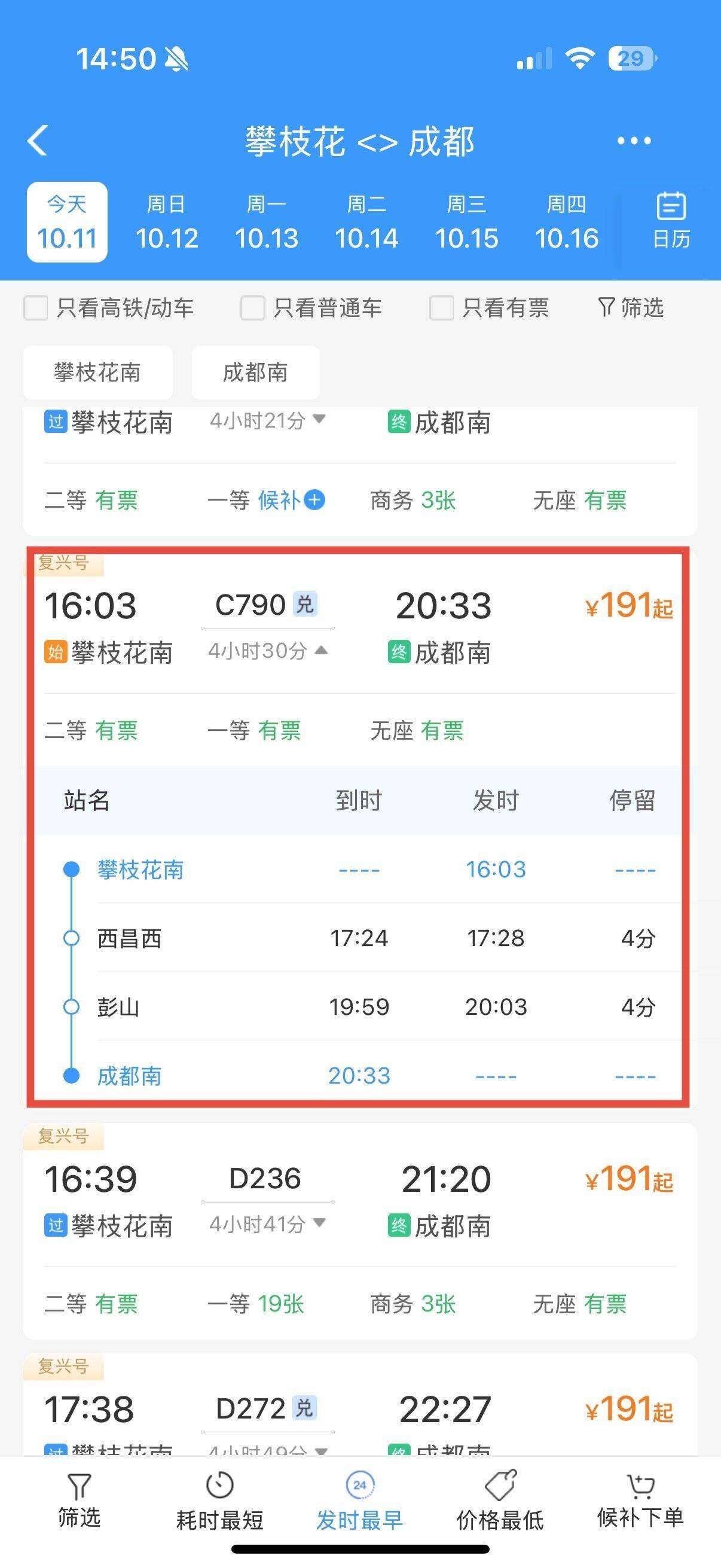 新增成都南-攀枝花南C791次,攀枝花南-成都南C790次;达州至成都东C717次、成都东至达州C716次;重庆西至达州C718次、达州至重庆西C719次。记者查询铁路12306客户端发现,列车出发时段分布在上午下午热门时段,进一步方便了该区域群众出行。